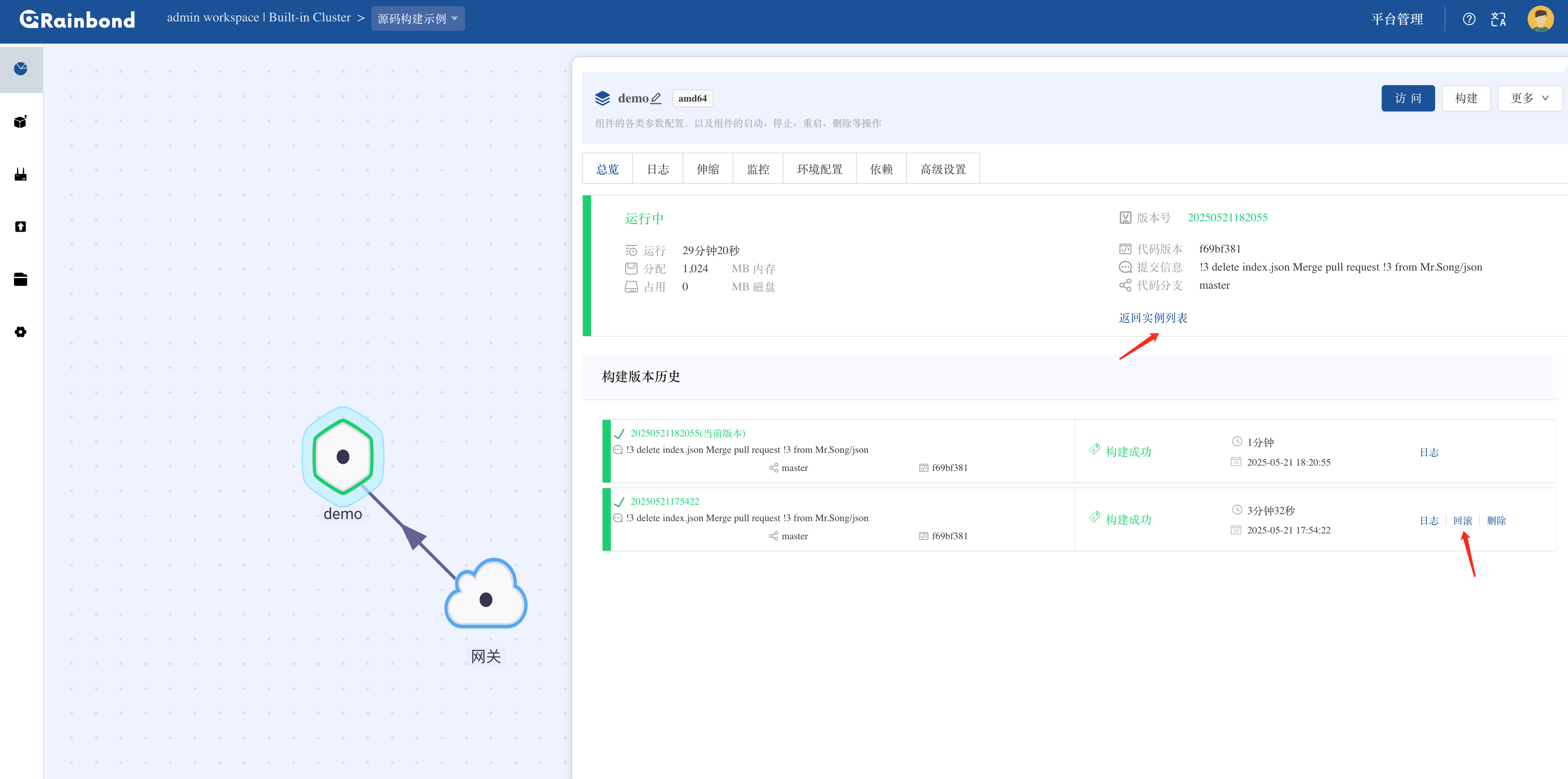 - 多版本管理:保留历史构建版本,支持快速版本切换