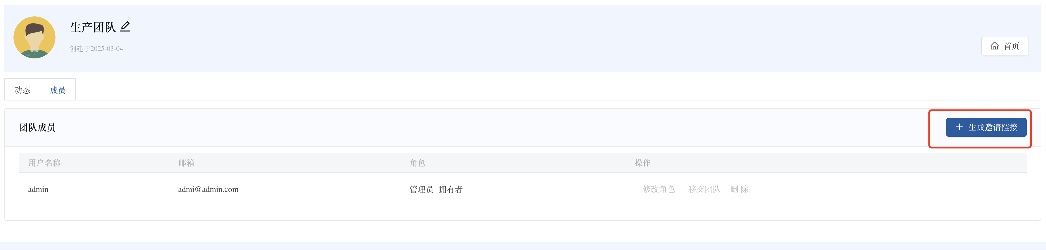 - 进入团队内 ➡️ 设置 ➡️ 成员,添加其他成员加入团队。